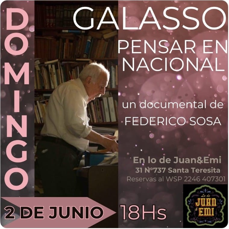 La propuesta tendrá lugar el domingo 2 de junio, a las 18.00, con la proyección del documental de Federico Sosa, “Galasso, Pensar en Nacional”.