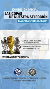 El sábado 12 de octubre llegarán al Partido de La Costa las tres copas ganadas por la Selección de Fútbol Argentina, en el marco de su recorrida por distintas ciudades de todo el país.