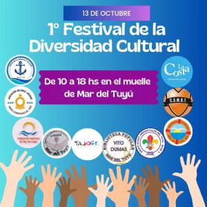 El próximo domingo 13 de octubre, Mar del Tuyú celebrará la 1° Fiesta de la Diversidad Cultural, organizado por las instituciones locales con el apoyo de la Municipalidad de La Costa. El evento que se desarrollará de 10:00 a 18:00, ofrecerá una jornada repleta de actividades culturales, gastronómicas y artísticas.