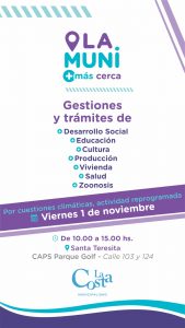 The post Por las condiciones climáticas, se reprogramó la llegada de “La Muni Más Cerca” a Santa Teresita first appeared on Prensa La Costa.