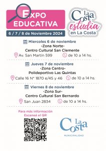 La Municipalidad de La Costa invita a estudiantes secundarios y al público en general a participar de la Expo Educativa “La Costa estudia en La Costa”, que se realizará del 6 al 8 de noviembre. En esta edición, se presentará la variada oferta de carreras de nivel superior disponibles en el distrito para el ciclo lectivo 2025.
