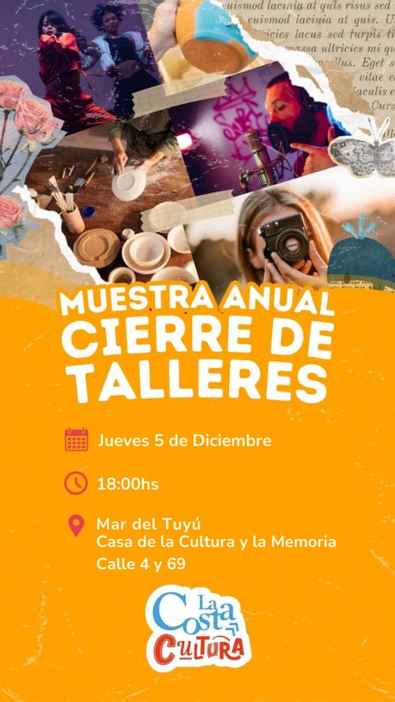 El jueves 5, en tanto, mostrarán lo aprendido durante el año los alumnos y las alumnas que participaron de las clases dictadas en la Casa de la Cultura y la Memoria de Mar del Tuyú, en Calle 4 y 69. En este caso, las actividades comenzarán a las 18.00.
