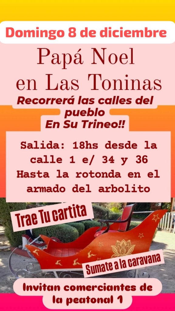 Este domingo 8 por la tarde Papá Noel, en su trineo, encabezará una caravana por Las Toninas. El recorrido comenzará a las 18.00 en Calle 1 entre 34 y 36.