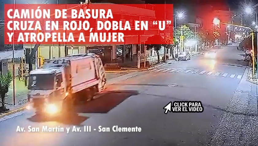 En un lamentable incidente ocurrido durante la noche del jueves 26 de diciembre, un camión de recolección de residuos (interno 425), cometió varias infracciones de tránsito antes de atropellar a una mujer en la intersección de las avenidas San Martín y III de la localidad de San Clemente.