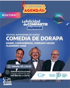 En esta oportunidad se presentará “Comedia de Dorapa” Con Daniel Campomenosi, Conrado Geiger y Alejandro Sanz, un evento organizado por el Instituto Cultural Bonaerense y la Subsecretaría de Cultura de la Municipalidad de La Costa.