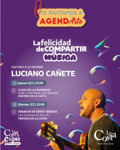 La Municipalidad de La Costa invita a la comunidad y a los visitantes a disfrutar de dos presentaciones en vivo del artista Luciano Cañete, quien ofrecerá su espectáculo musical en escenarios al aire libre, en el marco de las actividades culturales de la temporada de verano.