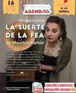 El próximo domingo 16 de febrero a las 21:00, el Espacio Cultural de Mar de Ajó será el escenario de la obra teatral “La suerte de la fea”, del reconocido dramaturgo argentino Mauricio Kartun.