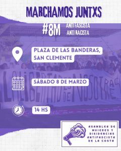 En el marco #8M, Marchamos juntas, diversas organizaciones, colectivos y vecinas del Partido de La Costa se reunirán en una jornada de movilización y reflexión en defensa de los derechos de las mujeres y disidencias.