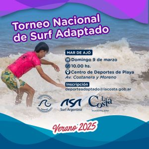 El evento reunirá a surfistas con discapacidad de todo el país, quienes buscarán sumar puntos para el ranking nacional. Para inscribirse, hay que contactarse por correo electrónico escribiendo a deporteadaptado@lacosta.gob.ar.