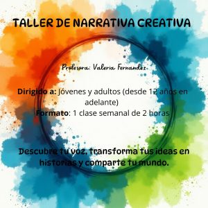 Además, se ofrecerá un taller de narrativa creativa a cargo de la profesora Valeria Fernández. La propuesta está destinada a jóvenes y adultos de 12 años en adelante y constará de una clase semanal de 2 horas.