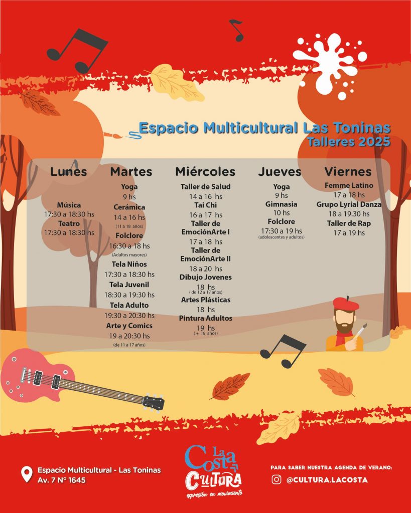 Las inscripciones se realizan en el Espacio Multicultural de Las Toninas, ubicado en Av. 7 N° 1645, y aún hay cupo para poder inscribirse en los que ya comenzaron.