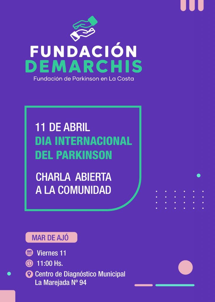 La Fundación Demarchis, Fundación de Parkinson en La Costa, tiene el agrado de invitar a toda la comunidad a participar de una charla abierta en conmemoración del Día Internacional del Parkinson, que se celebra cada 11 de abril. Este evento busca generar un espacio de encuentro, información y sensibilización sobre la enfermedad de Parkinson, promoviendo el acompañamiento a las personas afectadas, sus familias y cuidadores.