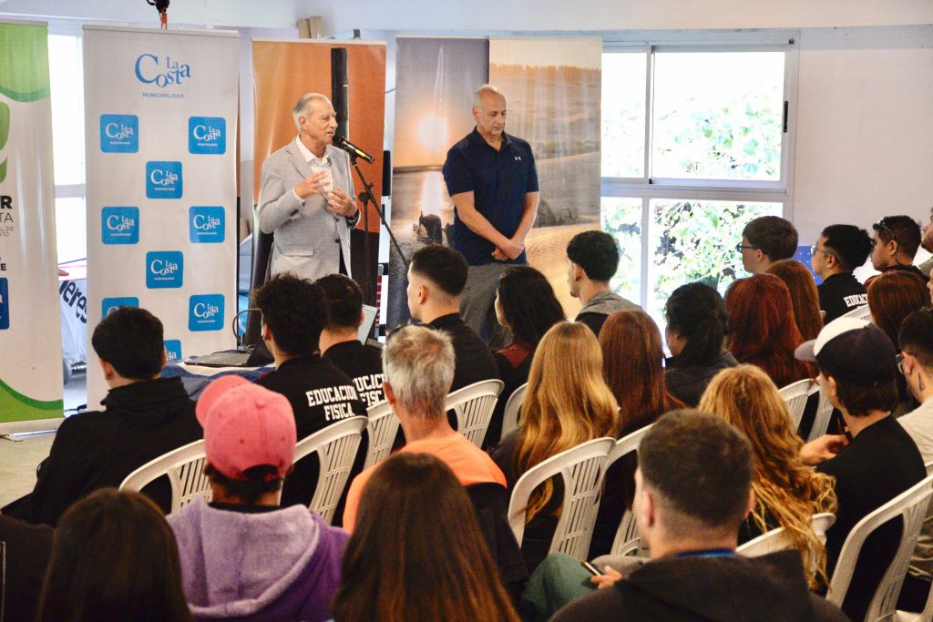 Un momento destacado de la jornada fue la participación del ciclista costero Lucas Vilar, quien compartió su experiencia en el deporte de alto rendimiento. “Es una oportunidad muy linda para mí. Vengo de estar dos meses fuera, y ver que el acompañamiento del municipio sigue es una alegría enorme. Me emociona encontrarme con compañeros del colegio que hoy estudian para ser profesores. Cómo costero, es una responsabilidad que me gusta asumir, acompañando tanto a los más chicos, como a quienes se forman para ser futuros entrenadores”, expresó.