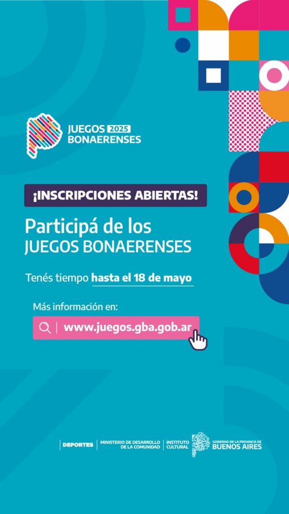 La 34ª edición de los Juegos Bonaerenses extendió el plazo de inscripción hasta el 25 de mayo. Quienes deseen participar deben completar sus datos en www.juegos.gba.gob.ar.