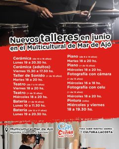El Espacio Multicultural de Mar de Ajó sigue creciendo con propuestas para todas las edades y gustos, por eso, a partir de junio comienzan a dictarse nuevos talleres artísticos y culturales.