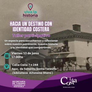 Se trata de un taller participativo que invitará a reflexionar sobre la historia y el patrimonio del Partido de La Costa. Asimismo se abordará la construcción colectiva de la identidad compartida como comunidad.