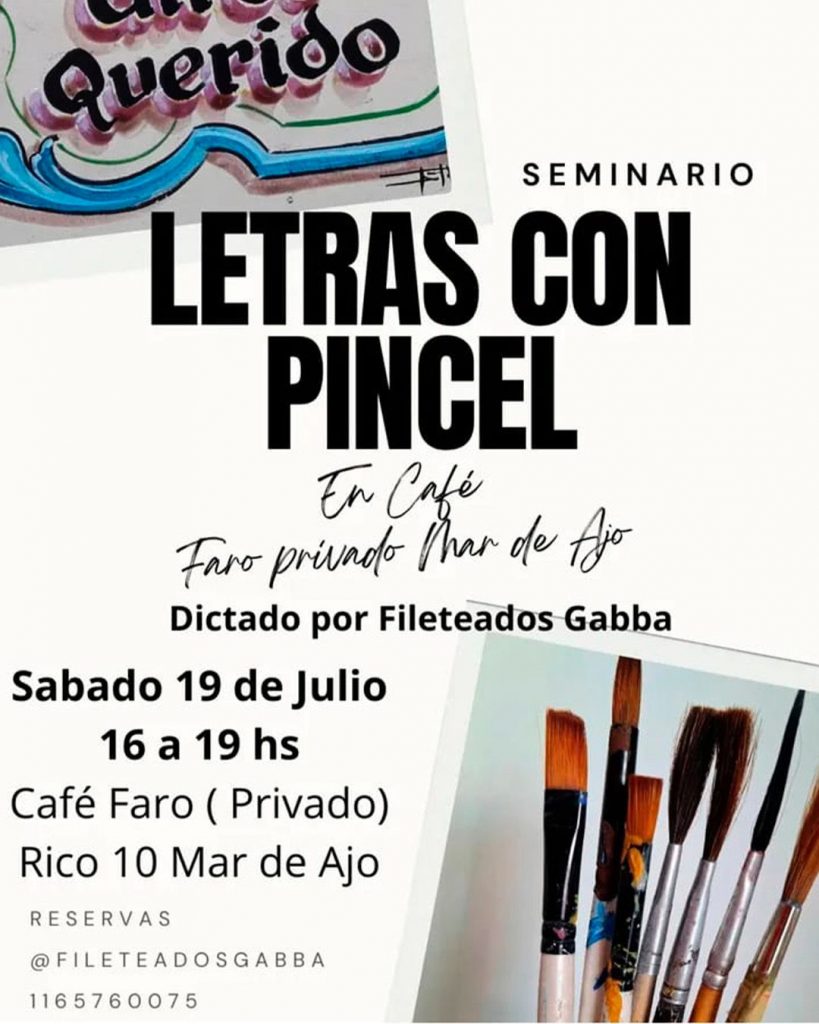 Este sábado 19 se ofrecerá un seminario de fileteado en Mar de Ajó. La actividad tendrá lugar de 16.00 a 19.00 en el Café Faro, ubicado en Rico Nº 10.