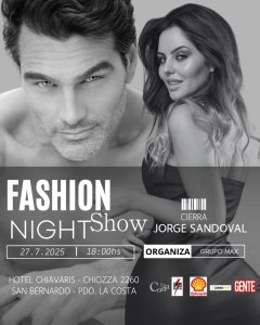 El próximo sábado 27 de julio, desde las 18.00, San Bernardo se viste de gala para recibir el Fashion Night Show de Jorge Sandoval en el Hotel Chiavari (Chiozza 2260). Una propuesta que combina moda, gastronomía y música en plenas vacaciones de invierno, organizada por Javier Castillo, referente de la moda en la región y productor general del evento.