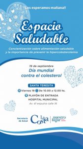 En el marco del Día Mundial contra el Colesterol, la Municipalidad de La Costa, a través de la Secretaría de Salud y el Servicio de Nutrición, llevará adelante este viernes 19 de septiembre una jornada de concientización abierta a la comunidad en el Playón de entrada del Hospital Municipal de Santa Teresita (Av. 41 y calle 16). La actividad se desarrollará de 10:00 a 12:00 horas y busca promover la importancia de la alimentación saludable y la prevención de la hipercolesterolemia.