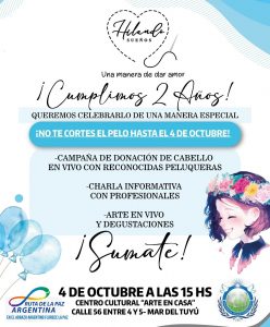 El próximo sábado 4 de octubre a las 15:00 horas, el proyecto solidario Hilando Sueños celebrará su 2º aniversario con una jornada especial en el Centro Cultural “Arte en Casa” (Calle 56 entre 4 y 5, Mar del Tuyú).