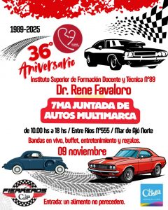 El Instituto Superior de Formación Docente y Técnica Nº 89 “Dr. René Favaloro” cumple 36 años de trayectoria educativa y lo celebrará con una nueva edición de su ya clásica Juntada de Autos Multimarca, organizada de forma conjunta con la Asociación de Fierreros de La Costa.
