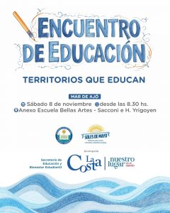 El sábado 8 de noviembre se llevará a cabo en Mar de Ajó el Encuentro de Educación Territorios que Educan, una jornada de reflexión y debate orientada a compartir experiencias y avanzar en la construcción colectiva de una nueva estatalidad educativa.