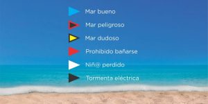 Y también se recuerda el código de banderas, dónde cada color indica el estado actual del mar y los recaudos a tomar por parte de los residentes y visitantes.