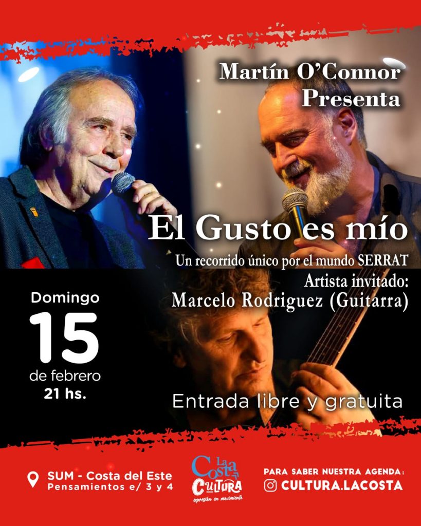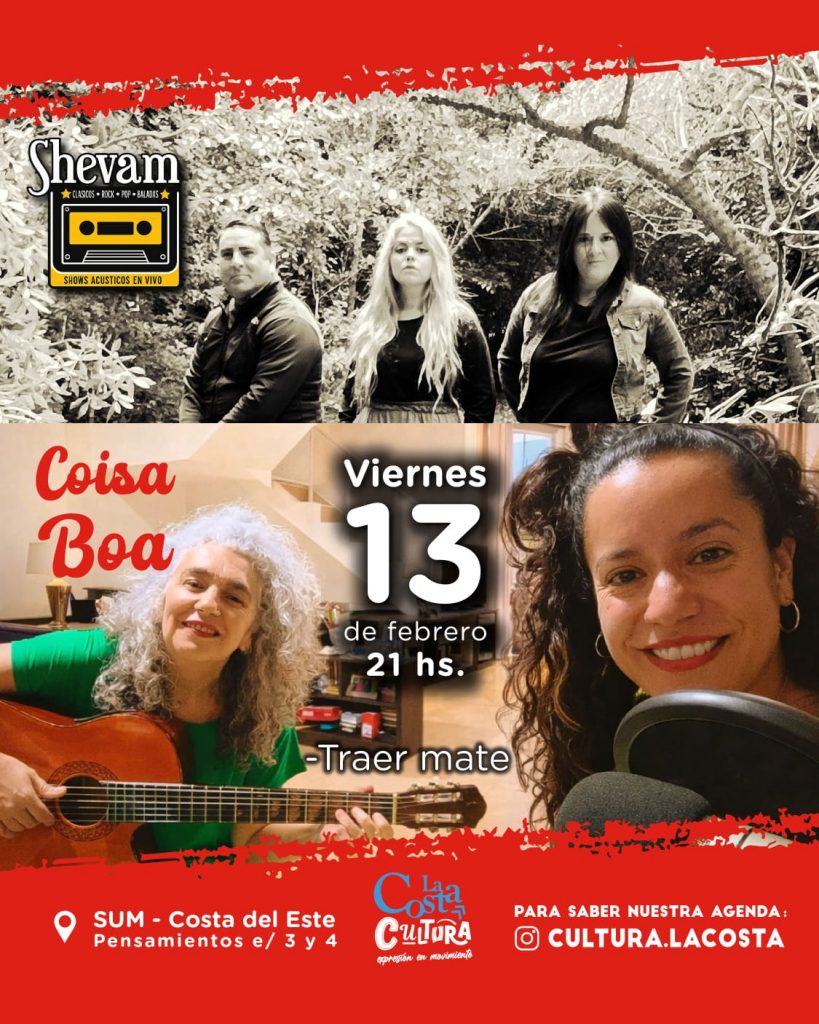 El viernes 13, a las 21.00, se presentarán Shevam y Coisa Boa. El domingo, en el mismo horario, será el turno de Martín O’Connor, quien rendirá tributo a Joan Manuel Serrat junto al guitarrista Marcelo Rodríguez.
